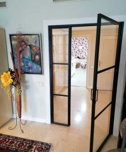 Separación de ambientes en el interior de la vivienda fabricado con tubo y pletina soldada sin que se aprecien las uniones perimetrales, de esta manera, el hierro ofrece estabilidad y rigidez manteniendo el minimalismo y la elegancia de un perfil delgado que proporciona diferentes combinaciones según la demanda y los gustos del cliente.
