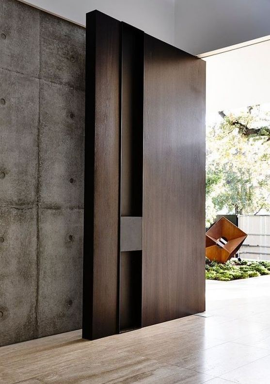 Puerta de entrada moderna con decoración exterior en madera (fenólico), en aluminio imitación madera o cualquier color de la carta Ral.