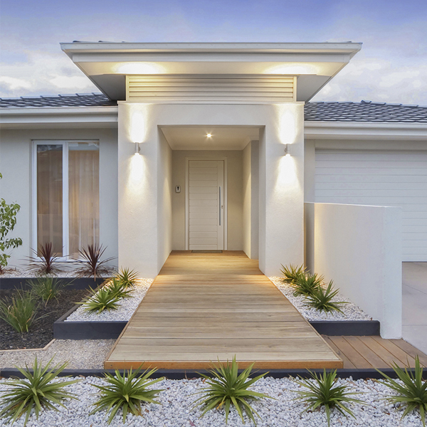 Puerta de entrada moderna con decoración en aluminio acabado madera o cualquier color de la carta Ral.