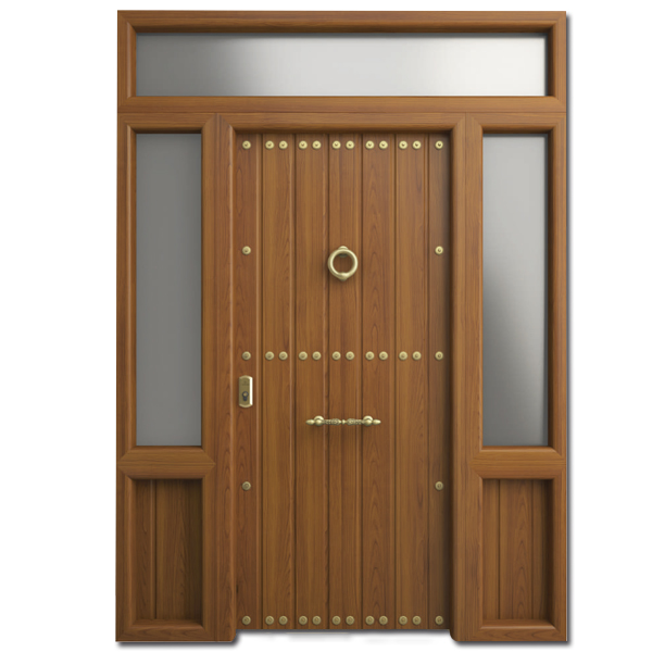 Puerta de entrada Rústica con decoración exterior en aluminio acabado madera o cualquier color de la carta Ral.